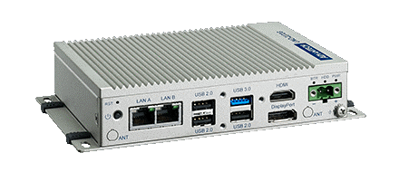 2 x GbE, 4 x USB, 4 x RS-232/422/485, 1 x HDMI, 1 x DP